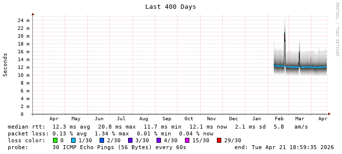 Running on SmokePing-2.6.11 by Tobi Oetiker and Niko Tyni